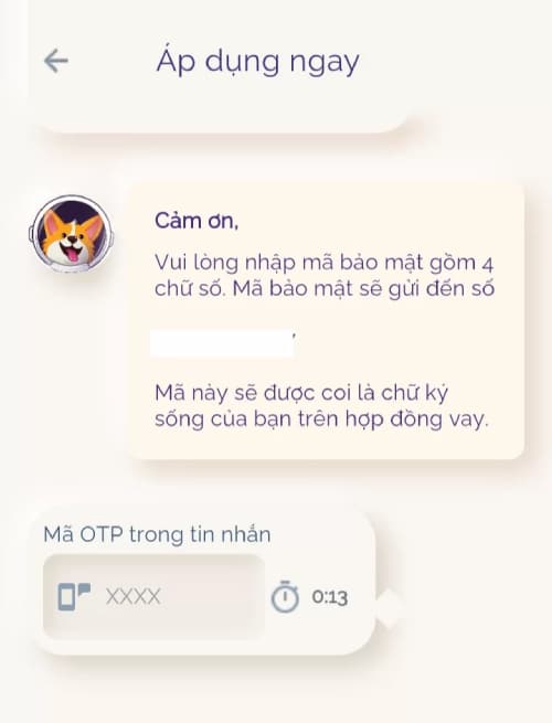 Cuối cùng, bạn Nhập mã OTP để hoàn tất hồ sơ vay tiền.