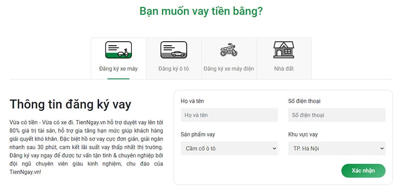 Đăng ký vay tiền online trên website TienNgay.vn